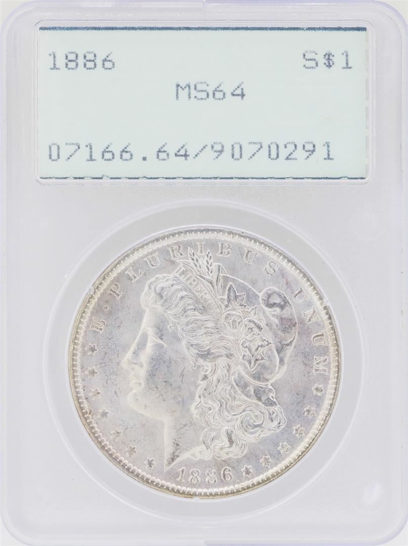 One 1886 $1 Morgan Silver Dollar Coin PCGS MS64 Rattler. PCGS Certified.