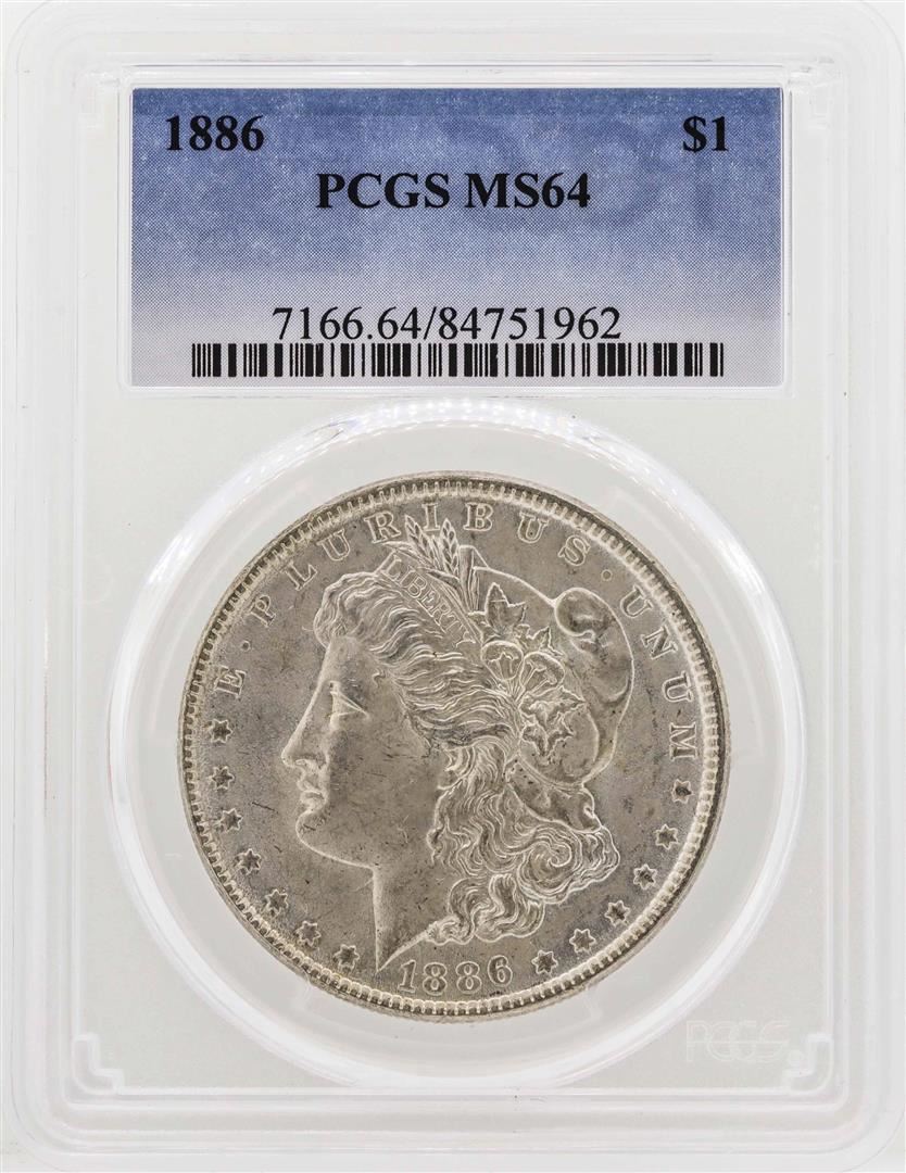 One 1886 $1 Morgan Silver Dollar Coin PCGS MS64. PCGS Graded.