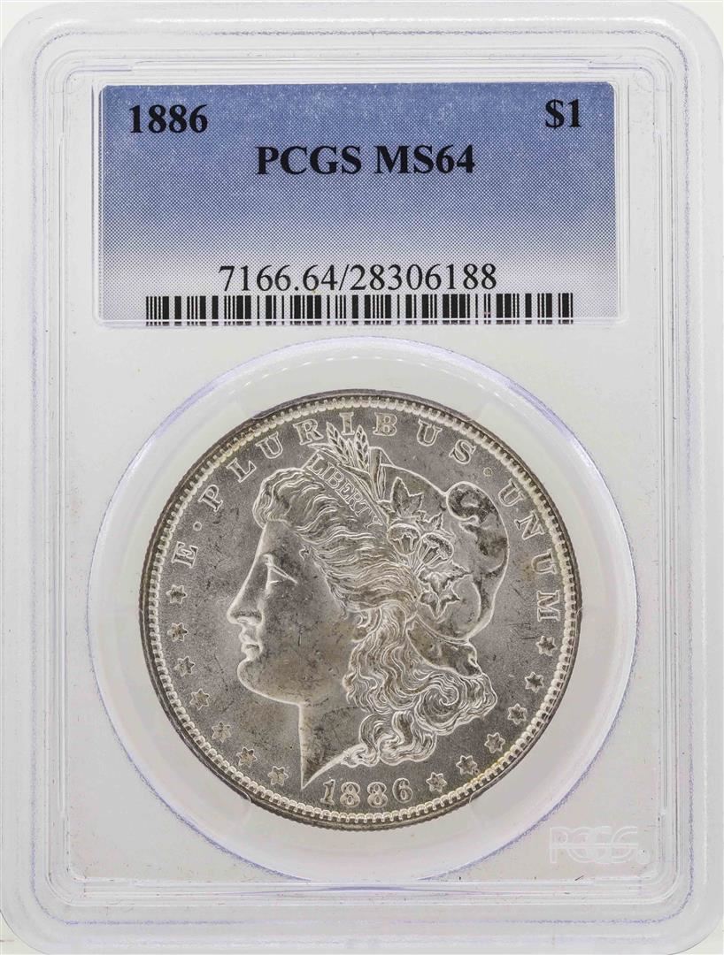 One 1886 $1 Morgan Silver Dollar Coin PCGS MS64. PCGS Graded.