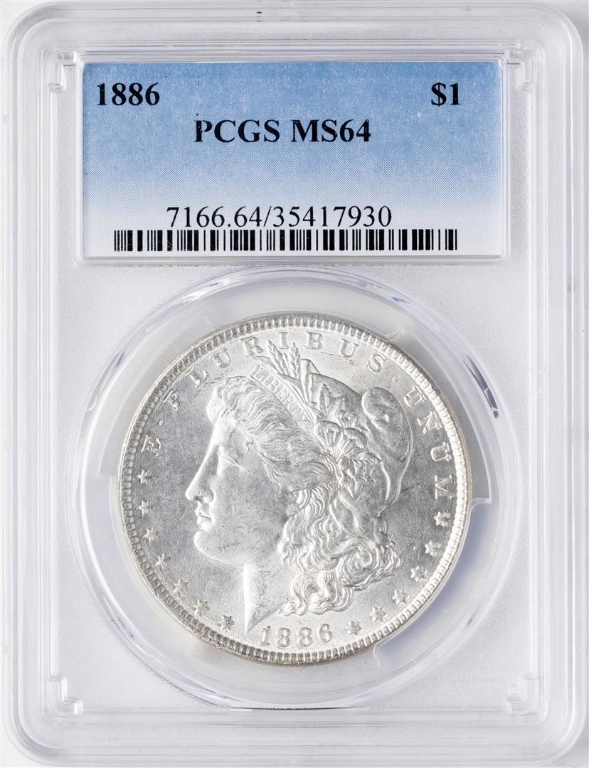 One 1886 $1 Morgan Silver Dollar Coin PCGS MS64. PCGS Graded.