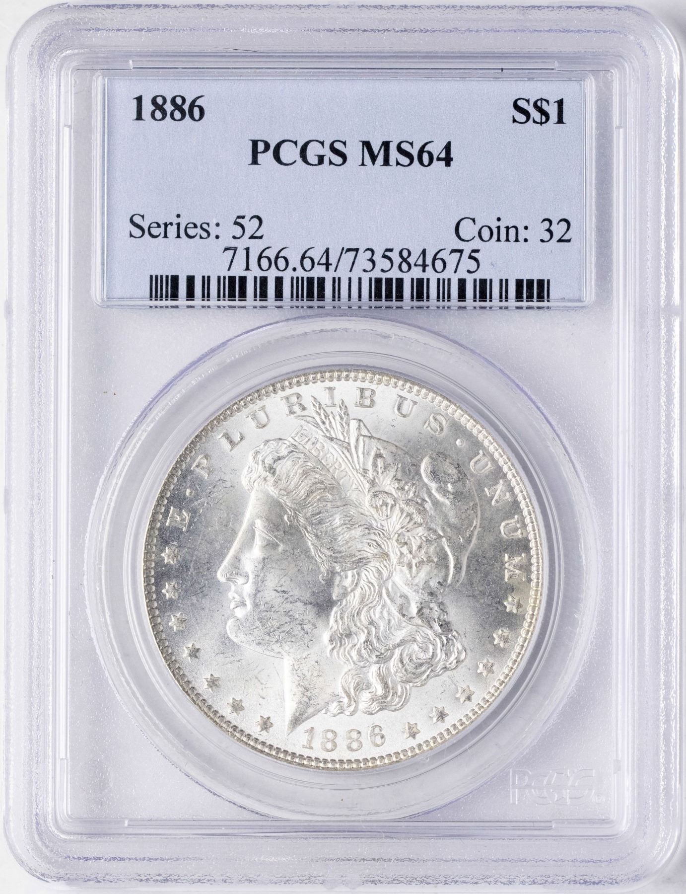 One 1886 $1 Morgan Silver Dollar Coin PCGS MS64.