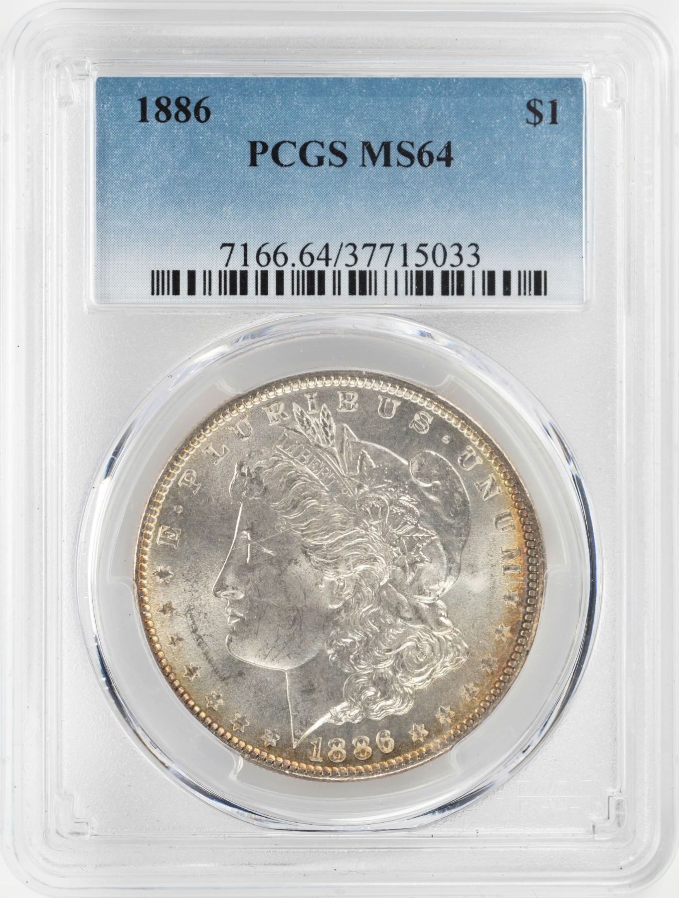 One 1886 $1 Morgan Silver Dollar Coin PCGS MS64.