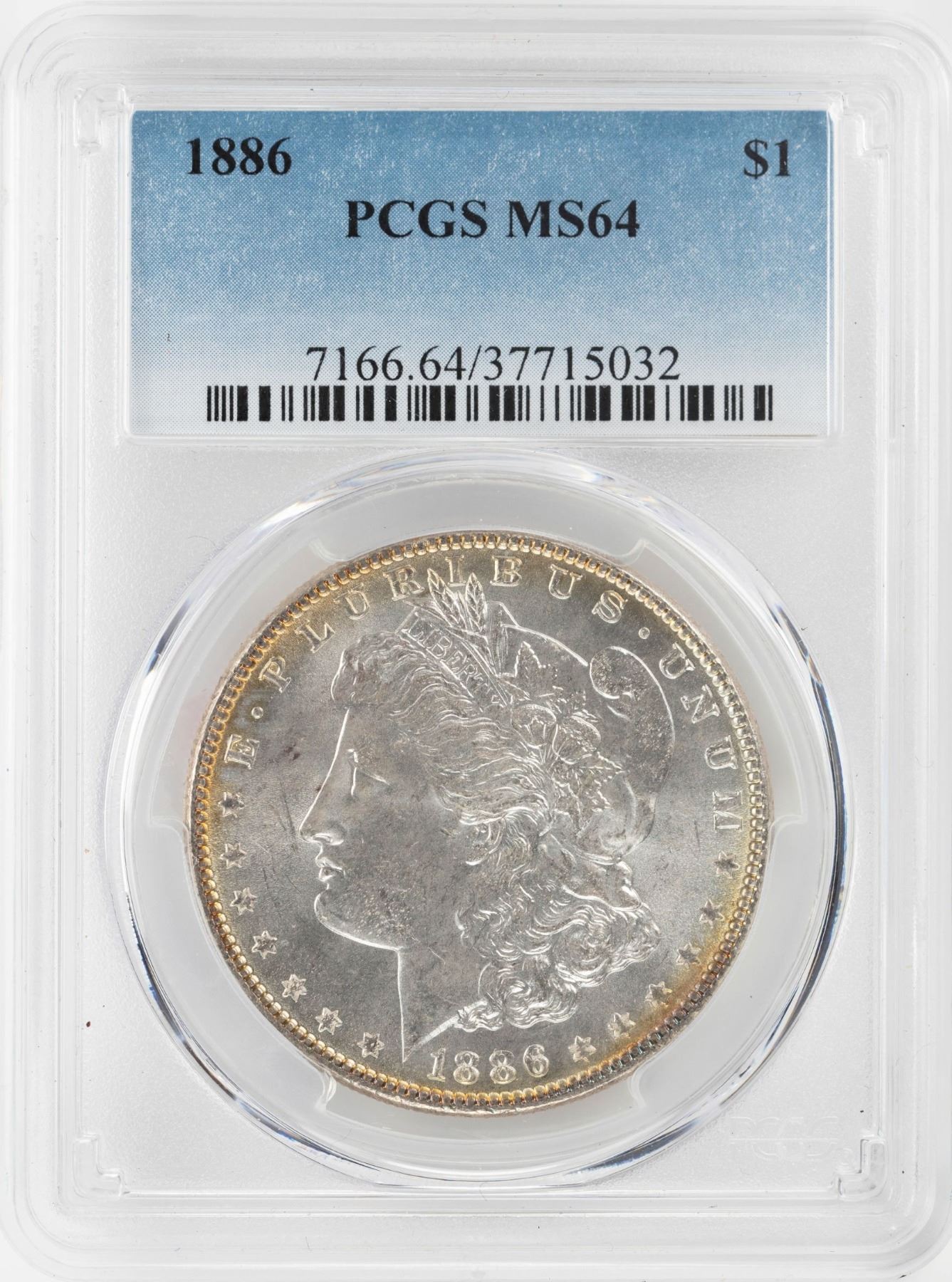 One 1886 $1 Morgan Silver Dollar Coin PCGS MS64.