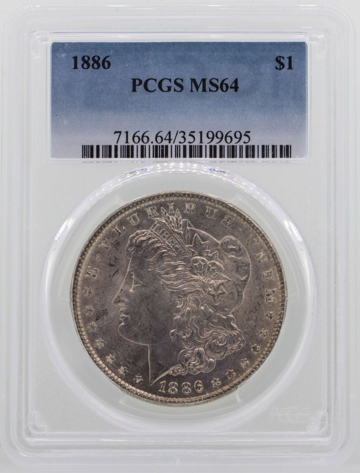 One 1886 $1 Morgan Silver Dollar Coin PCGS MS64.