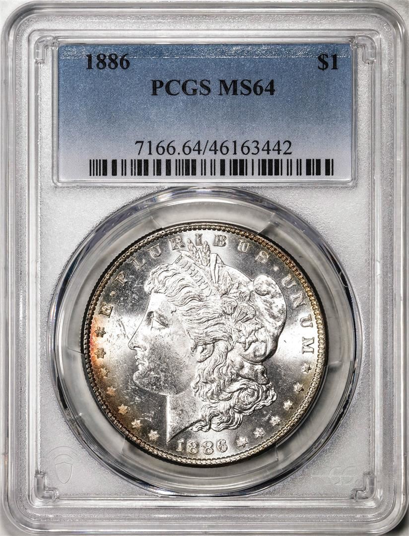 One 1886 $1 Morgan Silver Dollar Coin PCGS MS64. PCGS Graded.