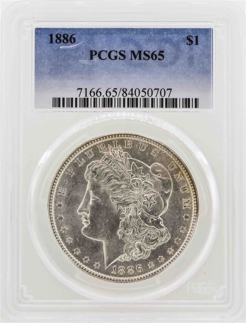 One 1886 $1 Morgan Silver Dollar Coin PCGS MS65. PCGS Graded.