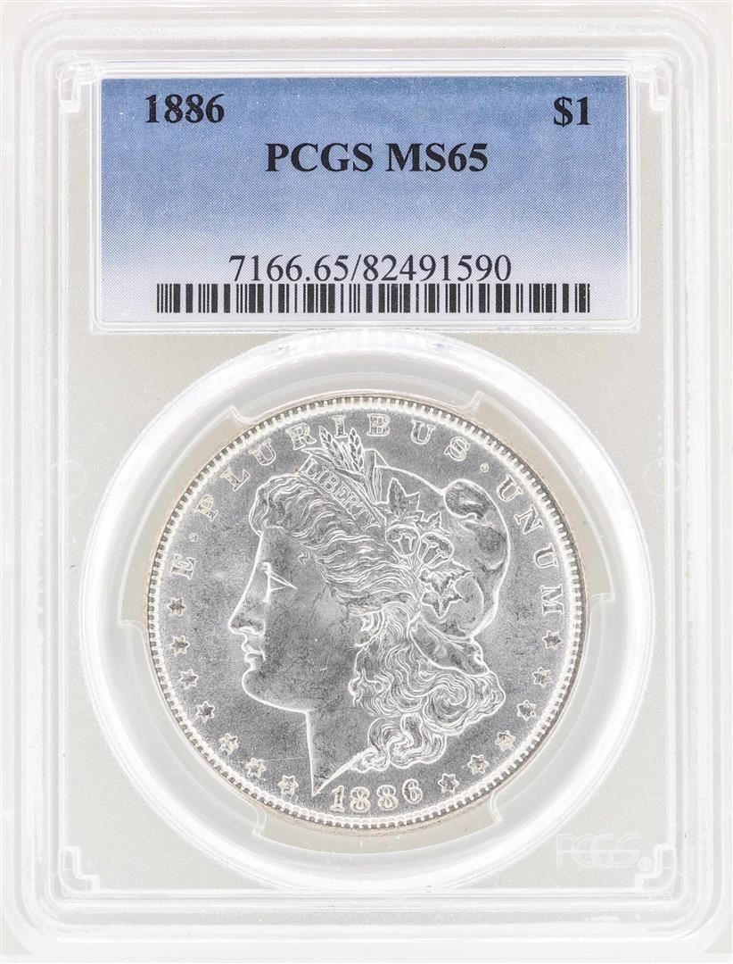 One 1886 $1 Morgan Silver Dollar Coin PCGS MS65. PCGS Graded.