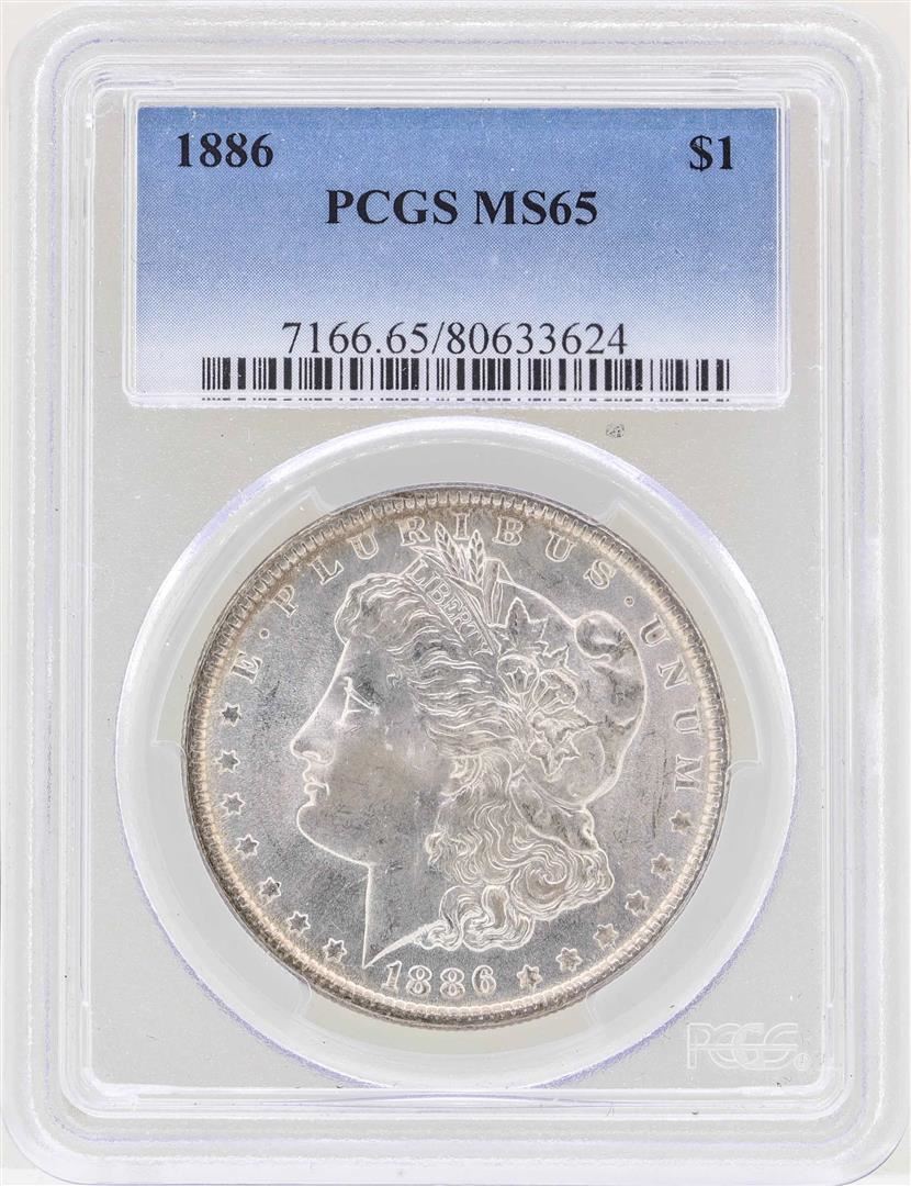 One 1886 $1 Morgan Silver Dollar Coin PCGS MS65. PCGS Certified.