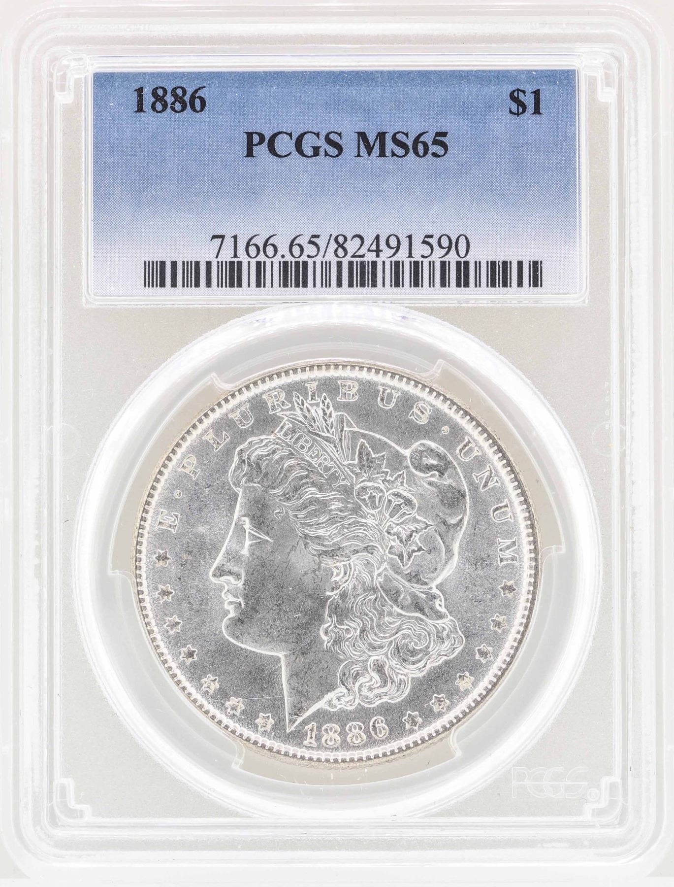 One 1886 $1 Morgan Silver Dollar Coin PCGS MS65.