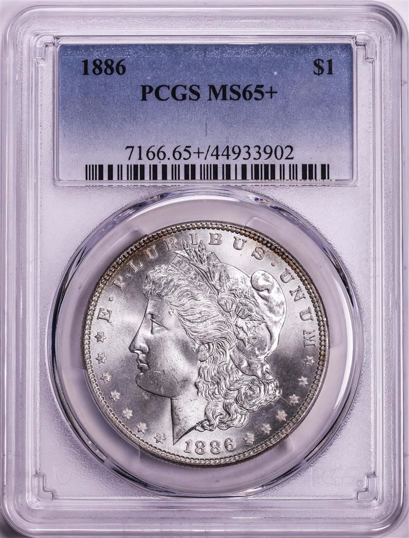 One 1886 $1 Morgan Silver Dollar Coin PCGS MS65+. PCGS Graded.