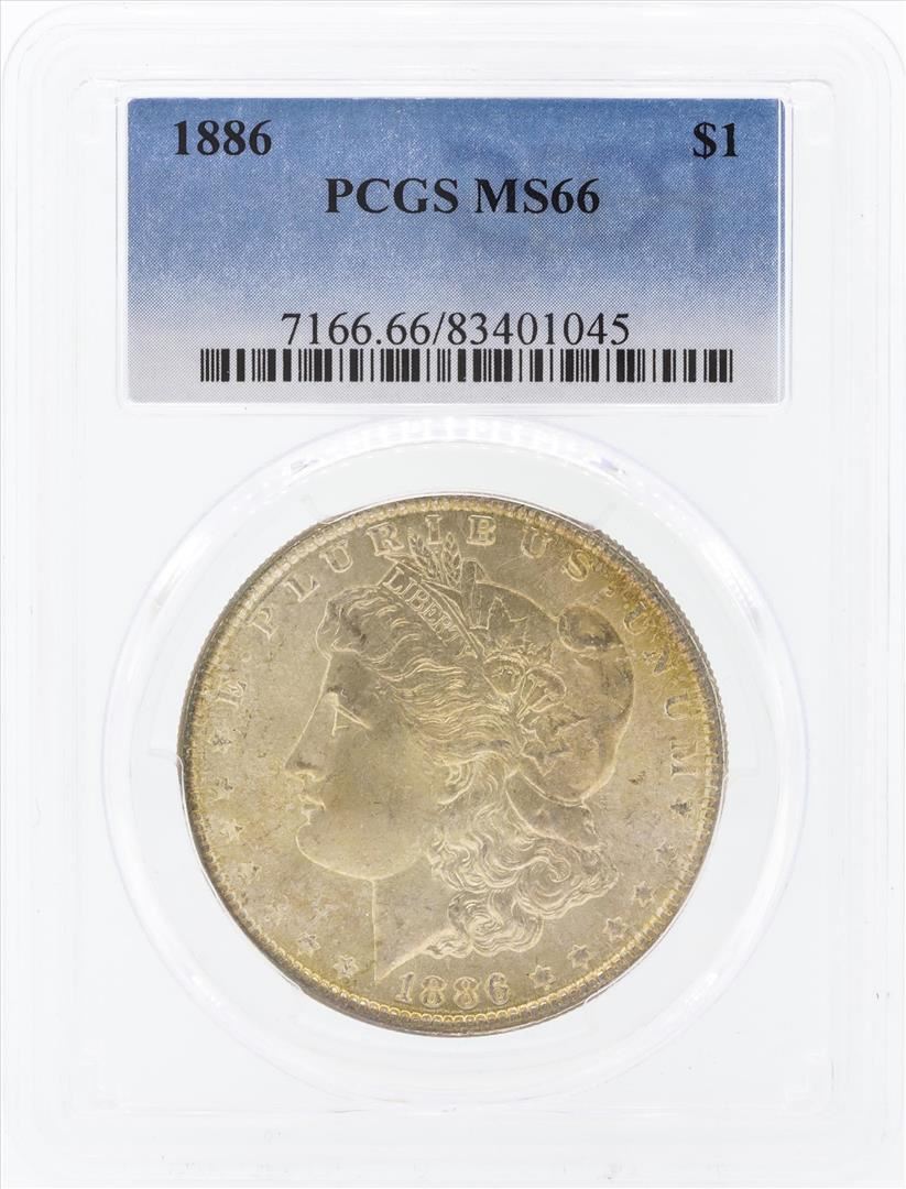 One 1886 $1 Morgan Silver Dollar Coin PCGS MS66. PCGS Certified.