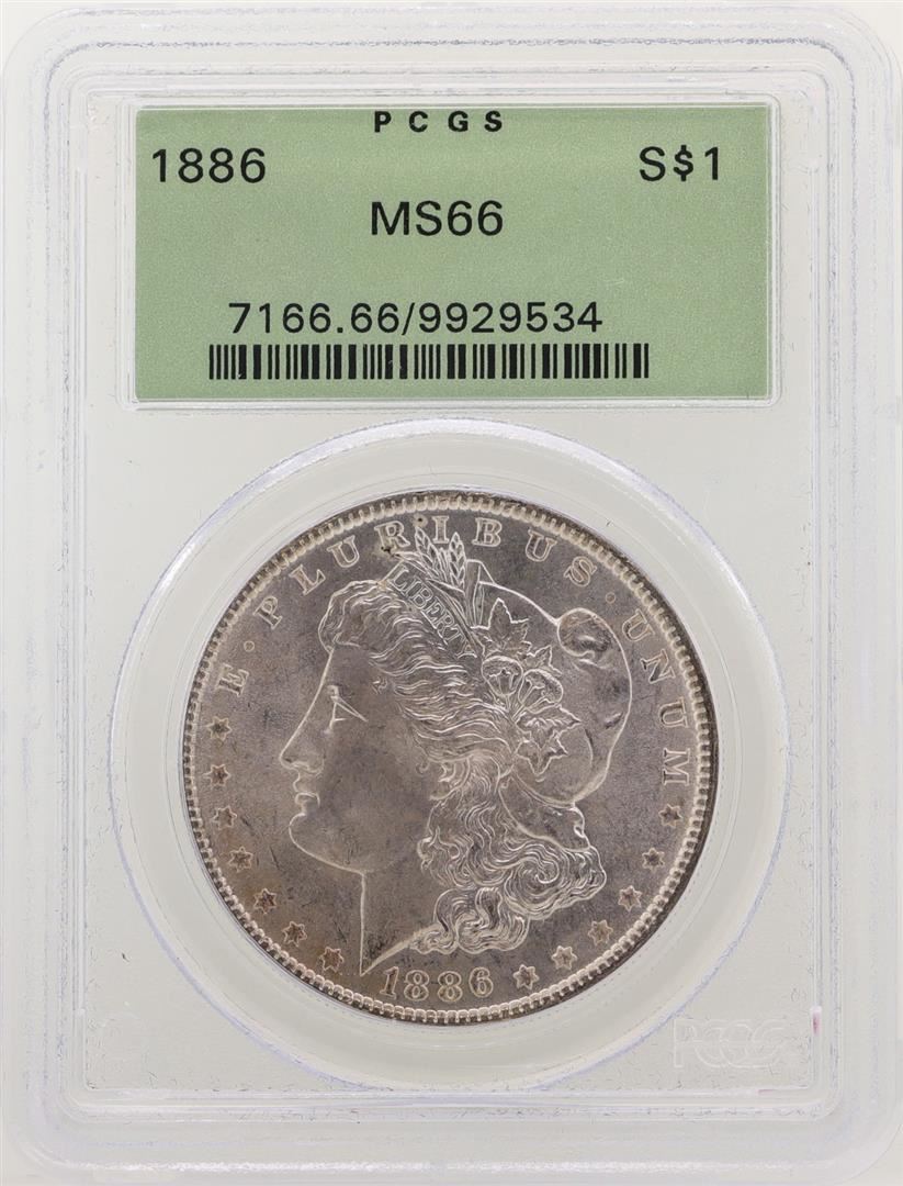 One 1886 $1 Morgan Silver Dollar Coin PCGS MS66. PCGS Graded.
