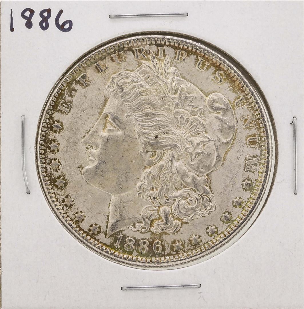 One 1886 $1 Morgan Silver Dollar Coin.
