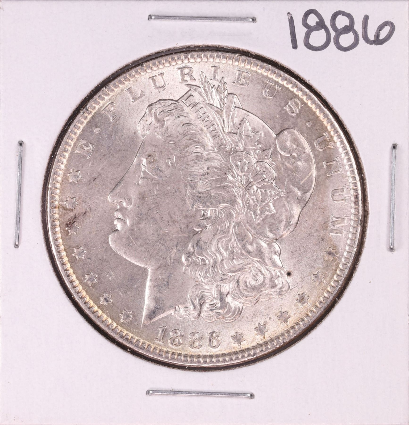 One 1886 $1 Morgan Silver Dollar Coin.