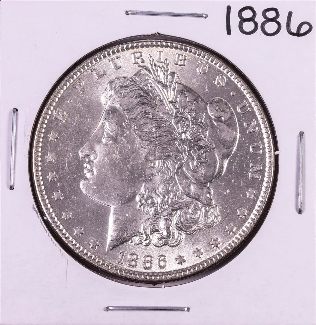 One 1886 $1 Morgan Silver Dollar Coin.