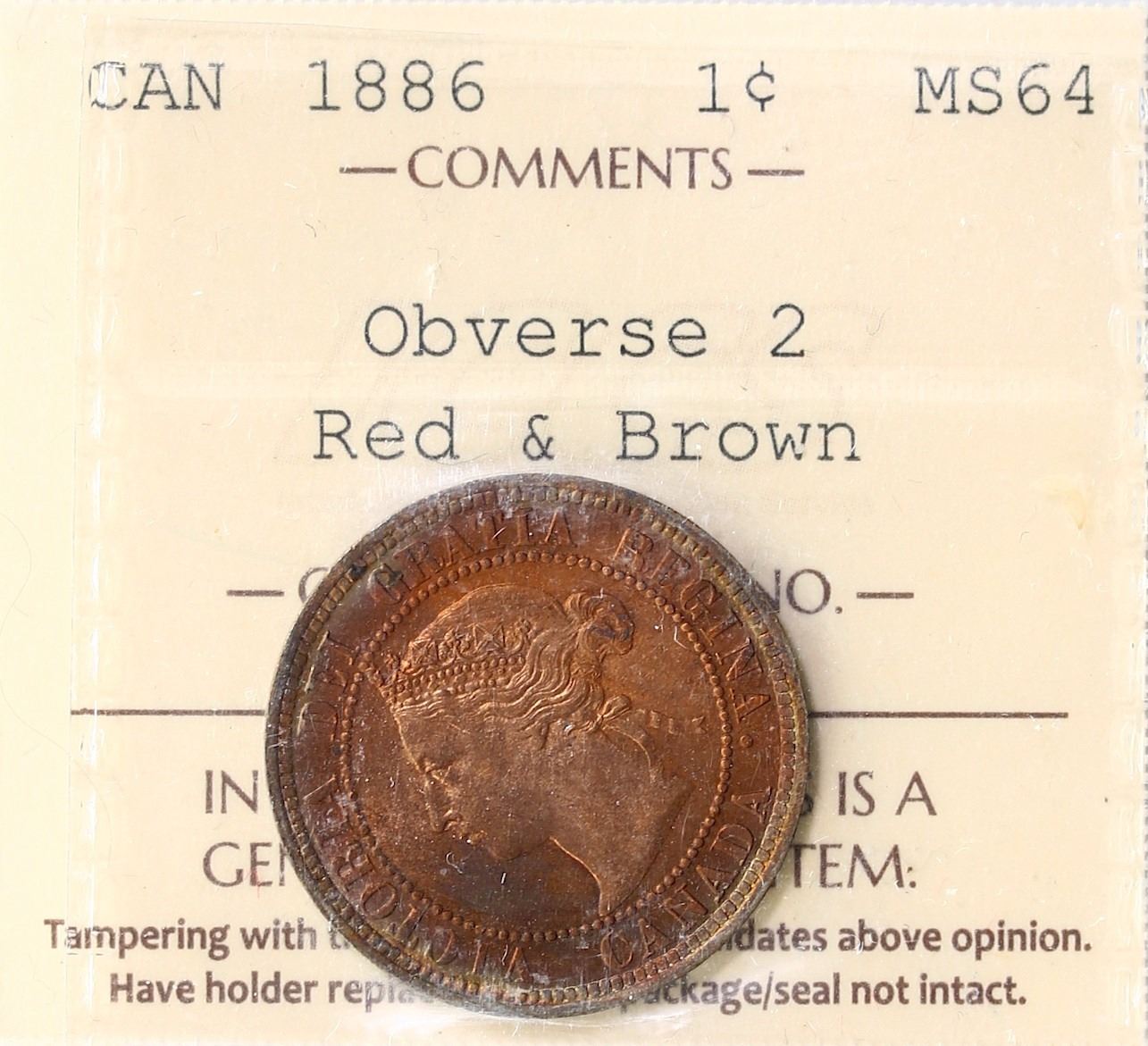 1886 1¢ "Obv 2" ICCS Choice Mint State-64RB