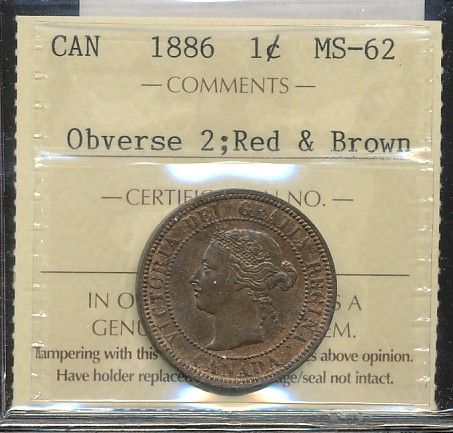 1886 1¢ Obv 2 ICCS MS62RB.