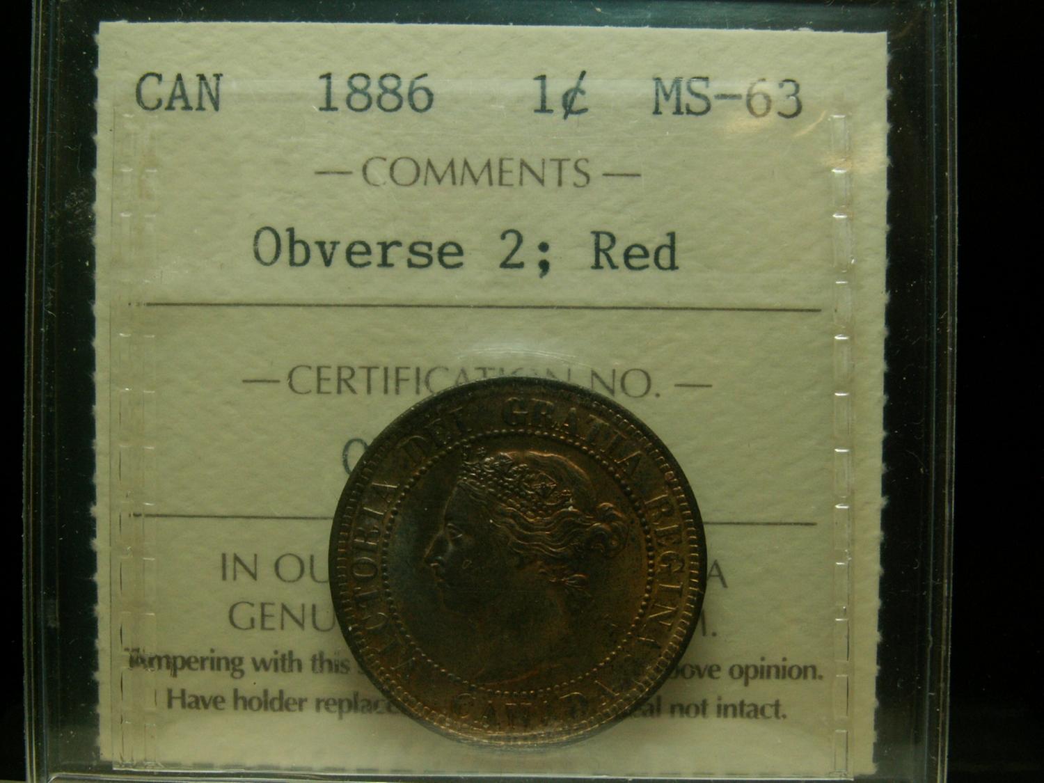 1886 1¢ Obv 2 ICCS MS63 Red
