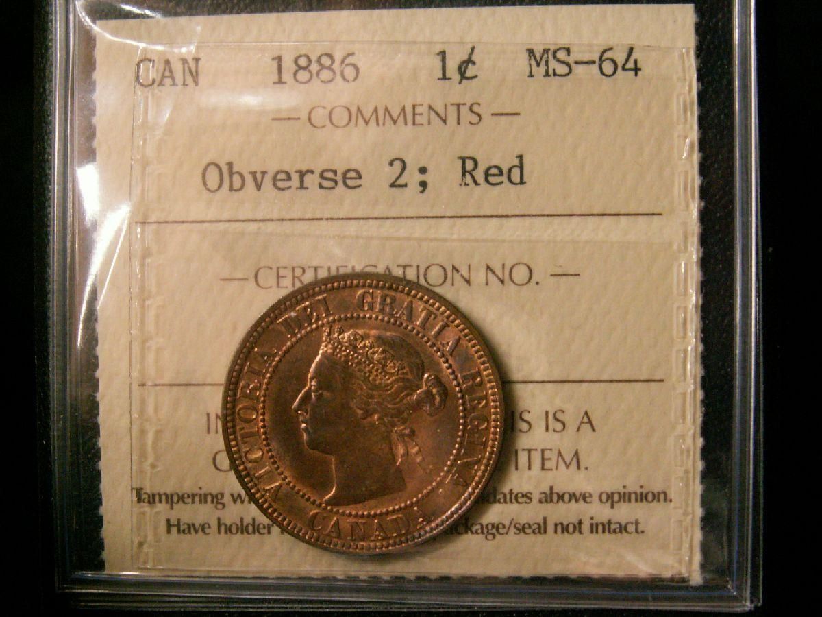 1886 1¢ Obv 2 ICCS MS64Red. A scarce date.