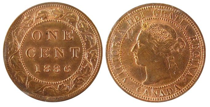 1886 1¢ Obv 2 ICCS MS65RD. 90% red. Well struck with exceptional surfaces and clean fields. The best of the best. An absolute gem of a coin. The nicest example ever graded by ICCS and handled by the cataloguer. Worth a premium bid.