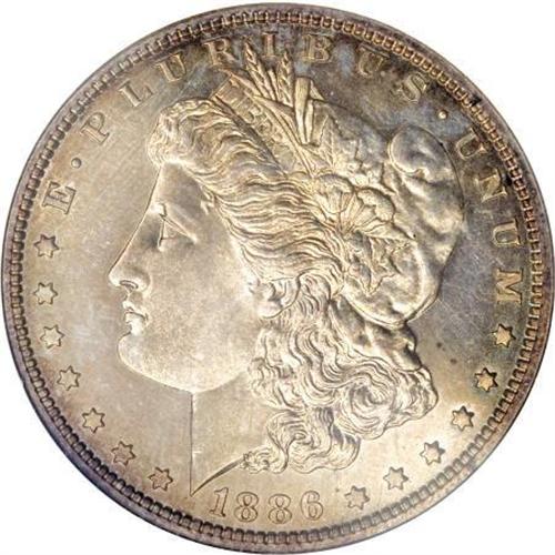 <B>1886 $1 PR64 NGC.</B></I> VAM-15. Breen-5587. The date is repunched south, a feature most apparent beneath the flag of the 1. This prominently mirrored and exactingly struck near-Gem offers consistent medium caramel-gold patina. The piece appears pristine to the unaided eye, and a loupe reveals only trivial imperfections. A mere 886 proofs were produced.<BR><BR><B>Coin Engraver:</B> George T. Morgan<BR><BR><b>Shipping:</b> Coins & Currency (<a target="_blank" href="http://www.heritageauctions.com/common/shipping.php">view shipping information</a>)