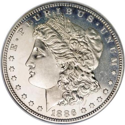 <B>1886 $1 PR65 NGC.</B></I> There is plenty of attractive mint frost on the devices, but the mirrored fields are a bit too shallow for a Cameo designation. Nonetheless, the contrast is sufficient to add to the broad appeal of this nice Gem. The surfaces are largely untoned, with just a hint of ice-blue near the obverse rim at 12 o'clock and a reverse ring of gold. A well-struck and pretty piece!<BR><I>From The Southwest Collection.</B></I><BR><BR><B>Coin Engraver:</B> George T. Morgan<BR><BR><b>Shipping:</b> Coins & Currency (<a target="_blank" href="http://www.heritageauctions.com/common/shipping.php">view shipping information</a>)