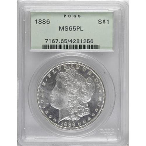 <B>1886 $1 MS65 Prooflike PCGS.</B></I> PCGS Population (83/18). NGC Census: (98/20). Numismedia Wsl. Price for NGC/PCGS coin in MS65: $240. (#7167)<BR><I>From The Diamond Head Registry Set of Prooflike Dollars.</B></I><BR><BR><B>Coin Engraver:</B> George T. Morgan<BR><BR><b>Shipping:</b> Coins & Currency (<a target="_blank" href="http://www.heritageauctions.com/common/shipping.php">view shipping information</a>\)