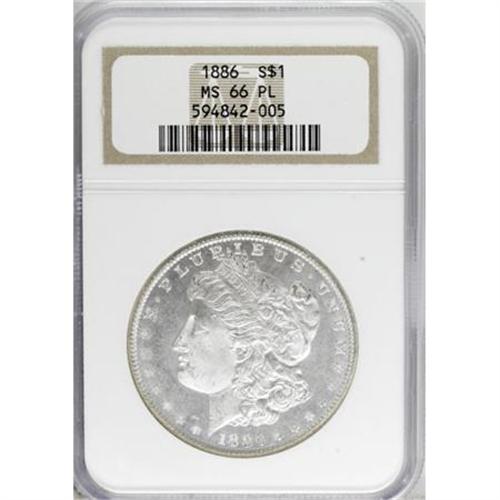 <B>1886 $1 MS66 Prooflike NGC.</B></I> NGC Census: (19/1). PCGS Population (17/1). (#7167)<BR><I>From The Diamond Head Collection.</B></I><BR><BR><B>Coin Engraver:</B> George T. Morgan<BR><BR><b>Shipping:</b> Coins & Currency (<a target="_blank" href="http://www.heritageauctions.com/common/shipping.php">view shipping information</a>\)