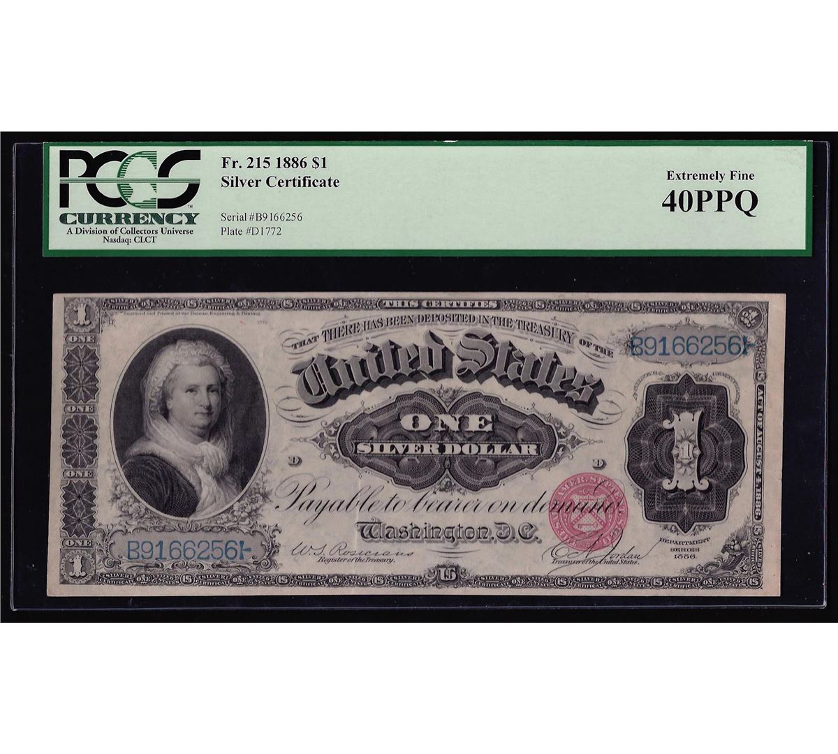 One 1886 $1 Silver Certificate PCGS Extremely Fine 40PPQ. PCGS Graded.