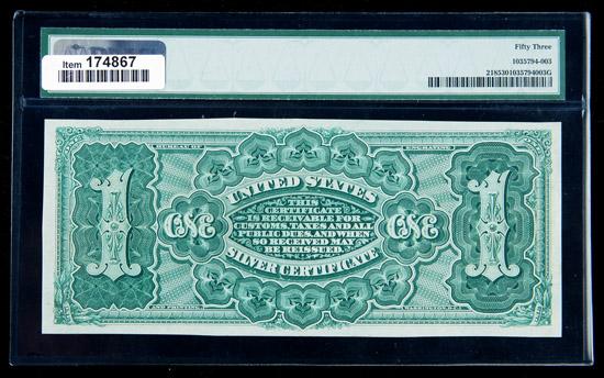 1886, $1 Silver Certificate. PMG About Uncirculated 53