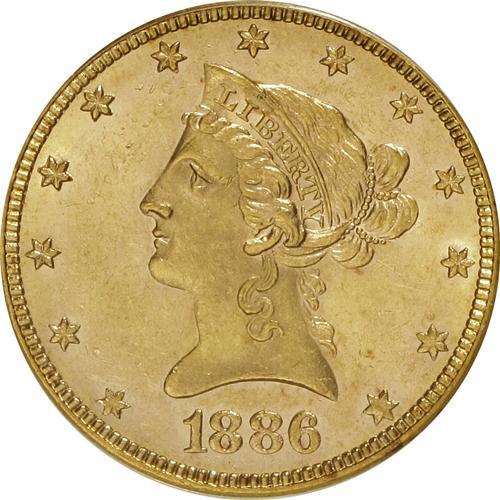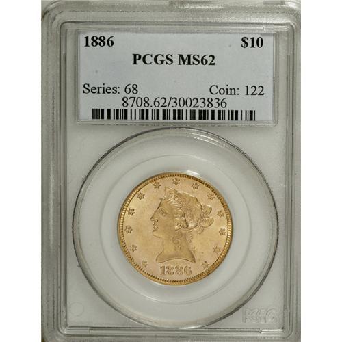 1886 $10 MS62 PCGS. PCGS Population (74/28). NGC Censu