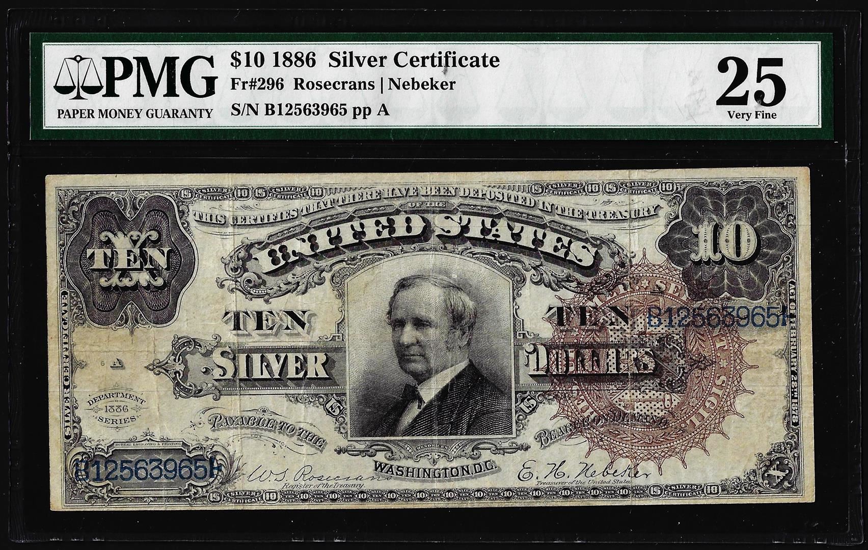 One 1886 $10 Tombstone Silver Certificate Note Fr.296 PMG Very Fine 25. PMG Certified.