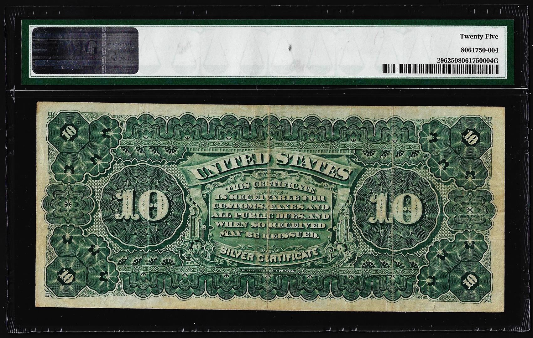 One 1886 $10 Tombstone Silver Certificate Note Fr.296 PMG Very Fine 25. PMG Certified.