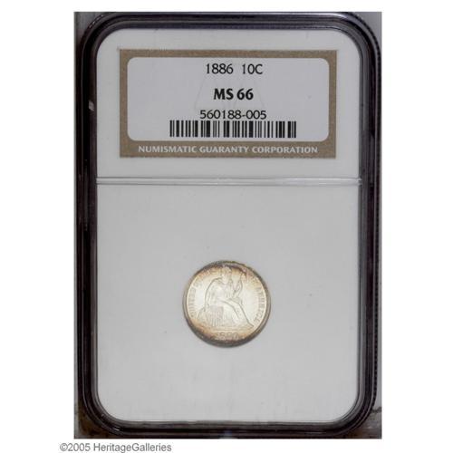 1886 10C MS66 NGC. Sparkling luster with scattered gol 1886[10C] MS66 NGC.