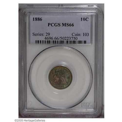 1886 10C MS66 PCGS. A visual feast of color, this piec 1886[10C] MS66 PCGS.