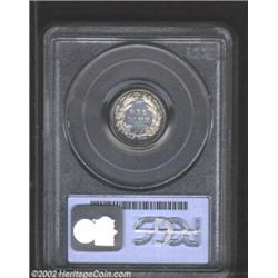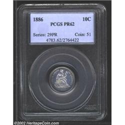 1886 10C PR62 PCGS. Mostly brilliant with a light accent of golden toning around the margins. Import