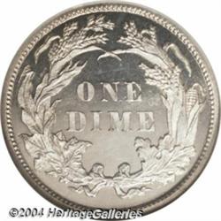 <table><tr><td><table><tr><td>1886 10C PR67 Cameo NGC. One of only 886 proofs produced this year; however, very few high grade examples were set aside. This is a sparkling, sharply contrasted example that is brilliant throughout and deeply mirrored. Population: 6 in 67, 0 finer (3/04). <BR><BR><B>Important notice:</B> Heritage usually auctions material at the rate of 200-250 lots per hour. On some occasions eBay Live bid software or the Internet may not be able to keep up with the pace of the auction. We recommend placing a realistic absentee bid now as insurance to avoid disappointment. Occasionally the auctioneer may eliminate or reject an eBay Live bid, and the auctioneer may also reopen a lot after the close of the eBay live bidding (usually because we missed an audience bid), and may reject your bid even if it shows you as the winning bidder. By bidding via eBay Live, you agree that Heritage may award the lot to another bidder at its sole discretion under the circumstances described above or any other reasonable circumstances. Since eBay bids are not shown to us until we open the lot on the floor, we treat those bids just like floor bids. In most cases the floor responds before the eBay bid is presented to us, due to Internet lag time, so for consistency we have made it a policy that floor bids are always considered first over tie eBay live bids. Also please note that all Heritage lots purchased through eBay Live carry a 20% Buyer's Premium. Please make sure you read the Terms and Conditions before you bid. <BR><BR><B>IMPORTANT ANNOUNCEMENT ABOUT RESERVES:</B> Heritage now divulges all reserves on its web site 7 days before every auction. If you want to know whether the reserve on this lot has been met, and if not, what the reserve amount is, please visit this lot page on the HeritageCoin.com web site, or email: bid@HeritageGalleries.com </span></font></td></tr></table></td></tr></table>