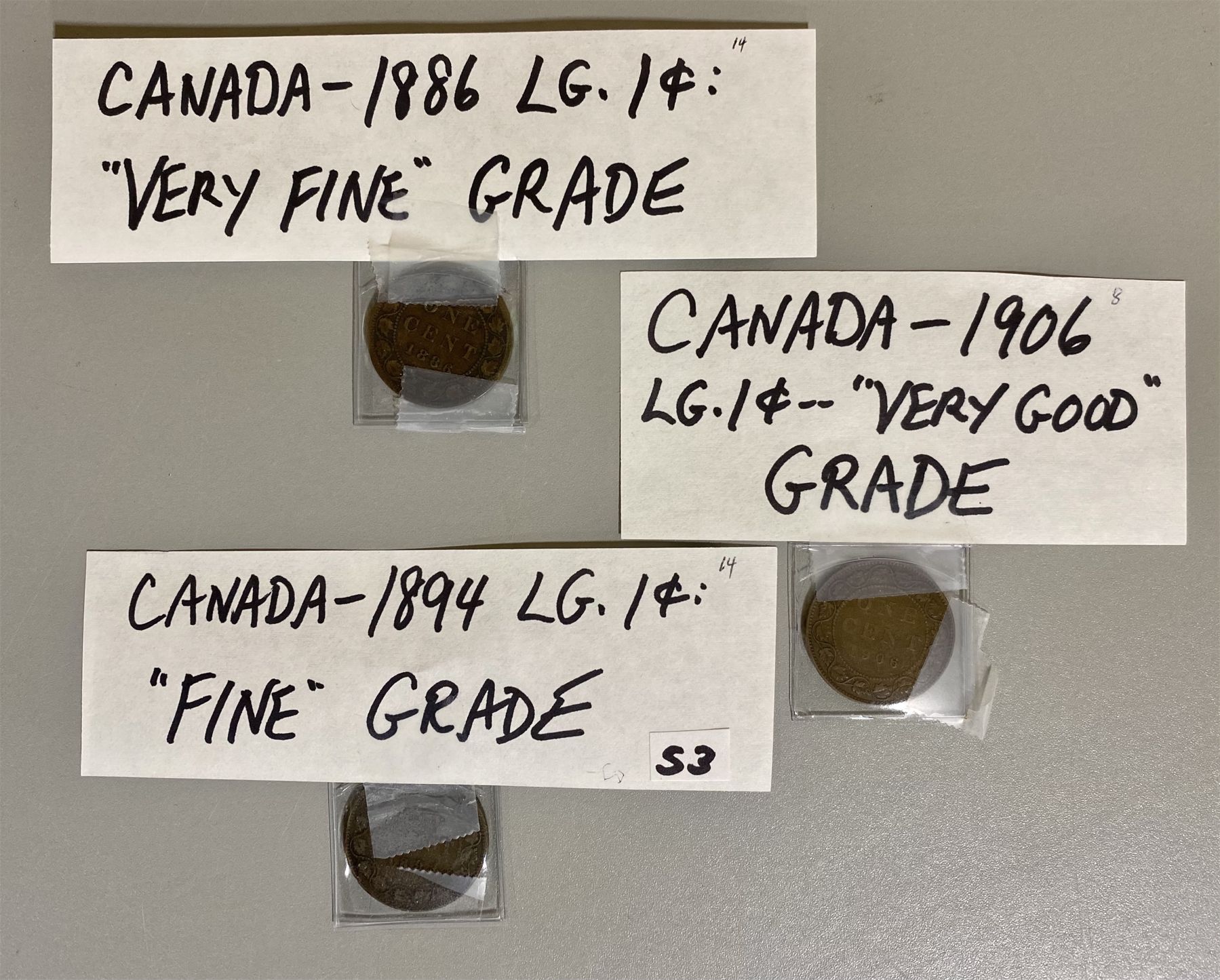 1886 / 1894 / 1906 - LOT OF 3 CANADIAN LARGE 1 CENT PIECES