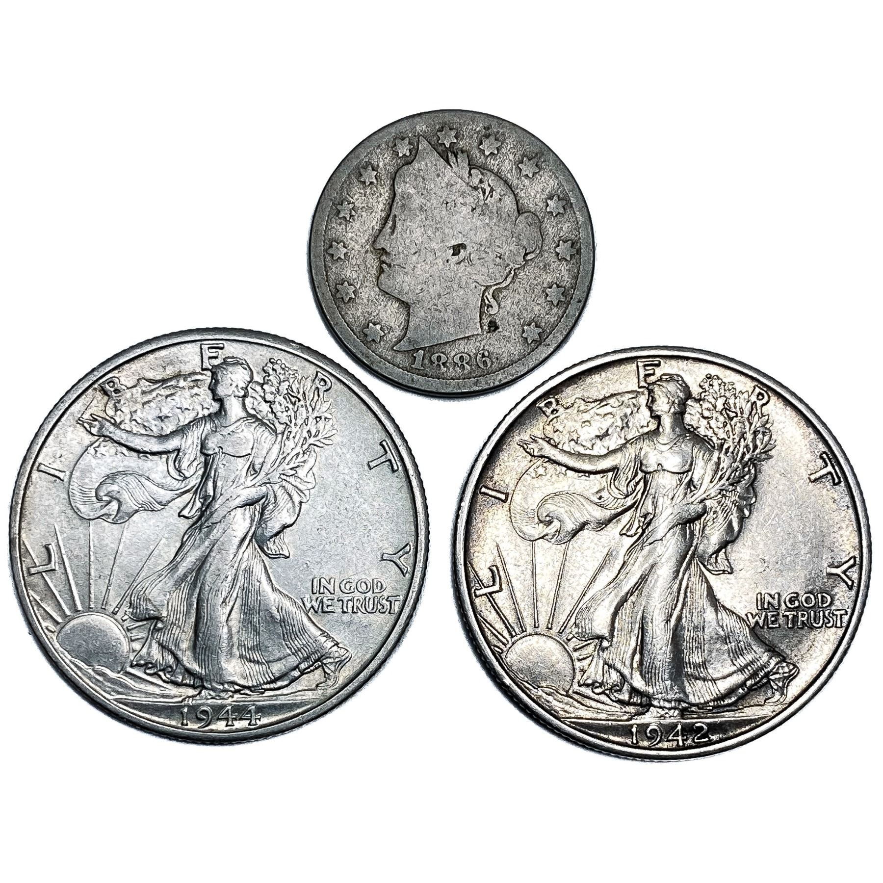 [1886, 1914-D, 1942-S] [3] Varied Silver Coinage HIGH GRADE