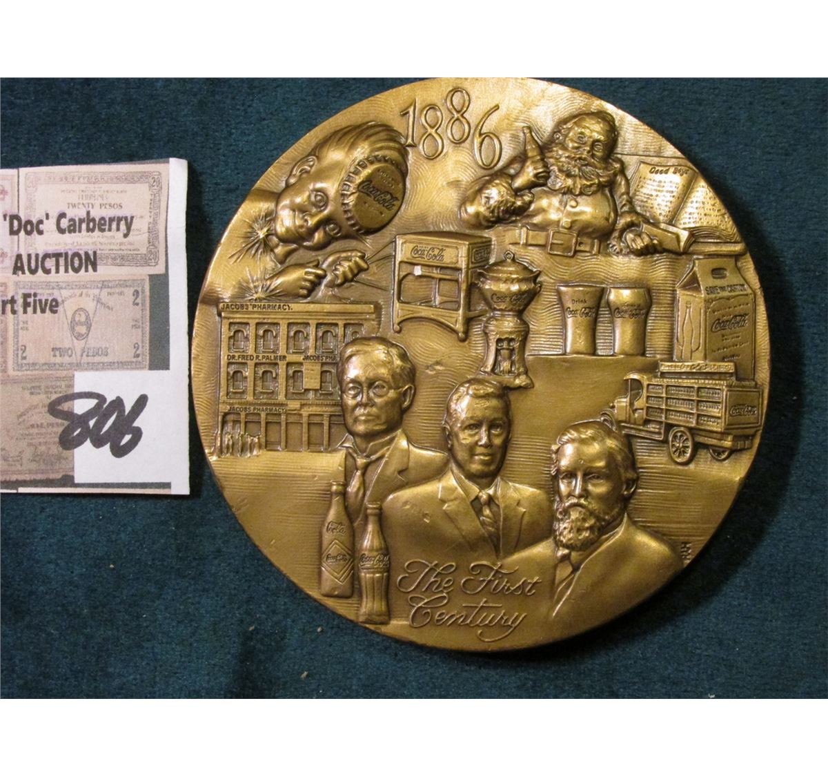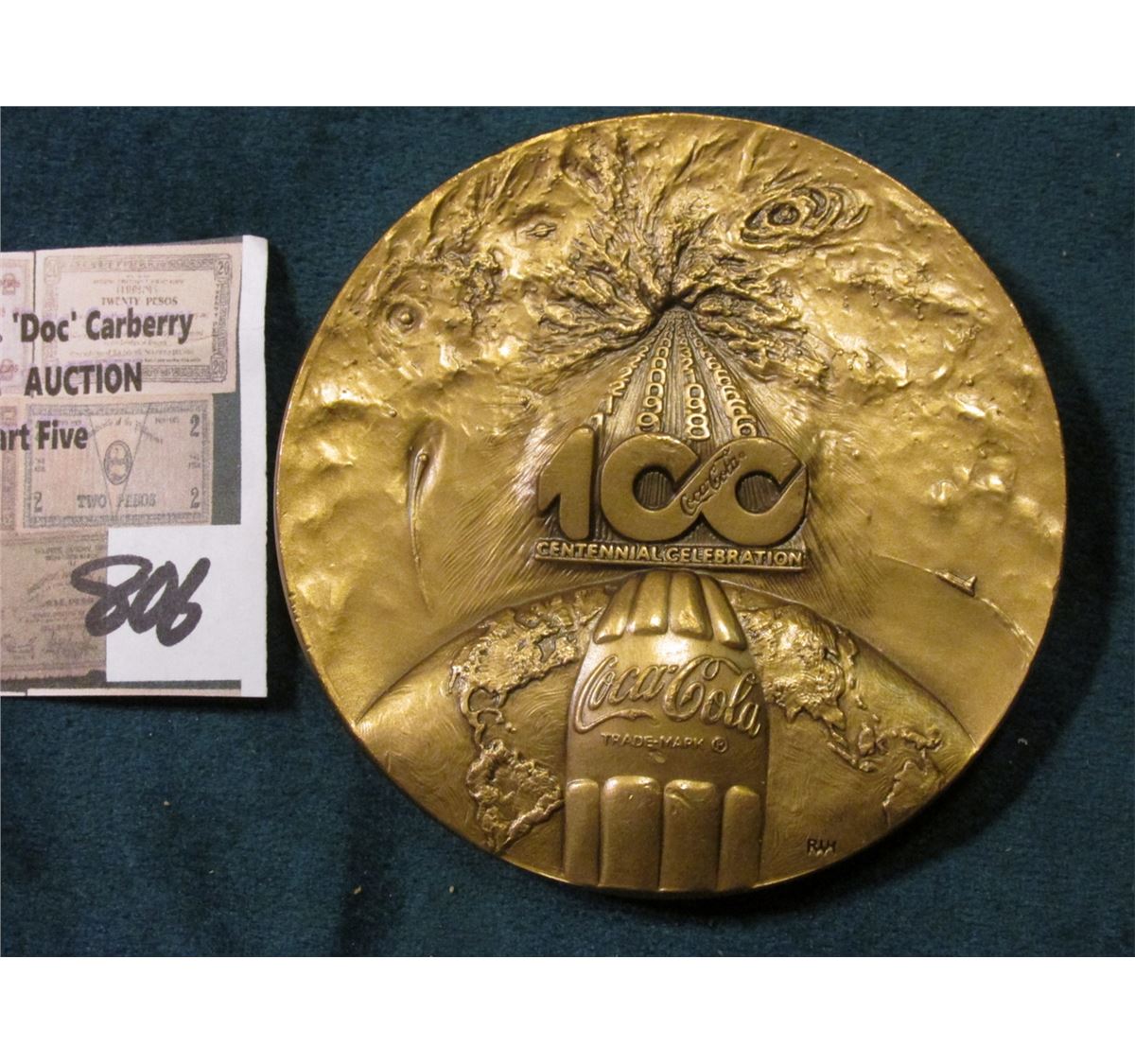 1886-1986 Coca-Cola Distributor Large Bronze Medal, 3" x 1/4", depicts 100 Centennial Celebration bo