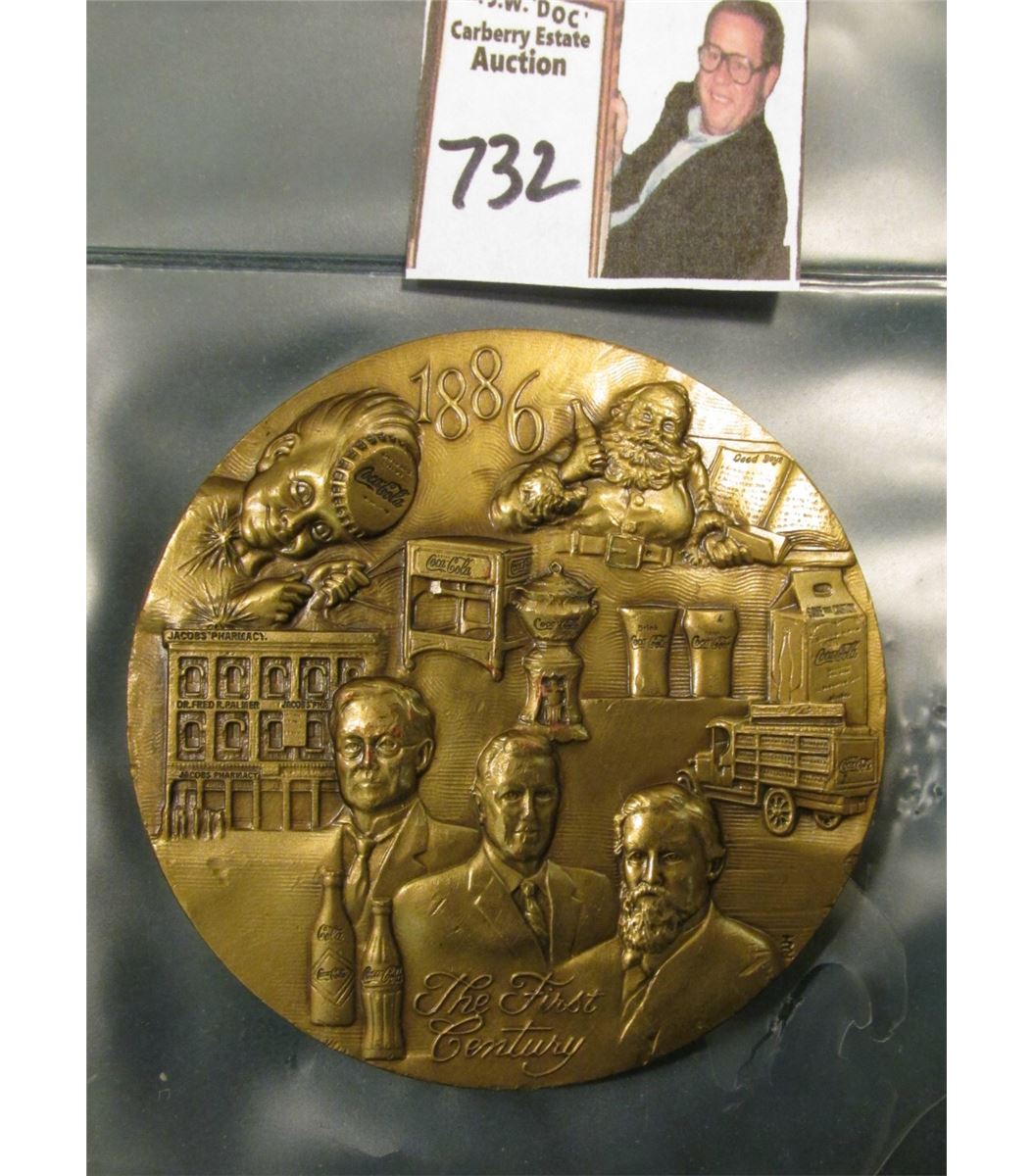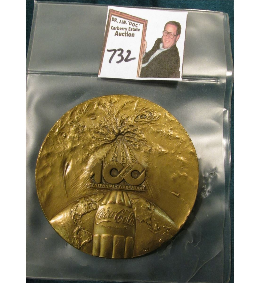 1886-1986 Coca-Cola Distributor Large Bronze Medal, 3" x 1/4", depicts 100 Centennial Celebration bo