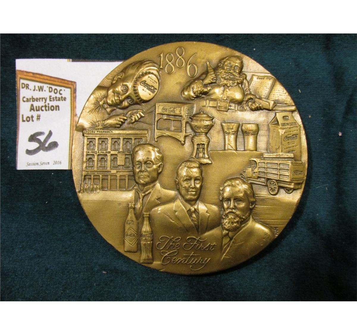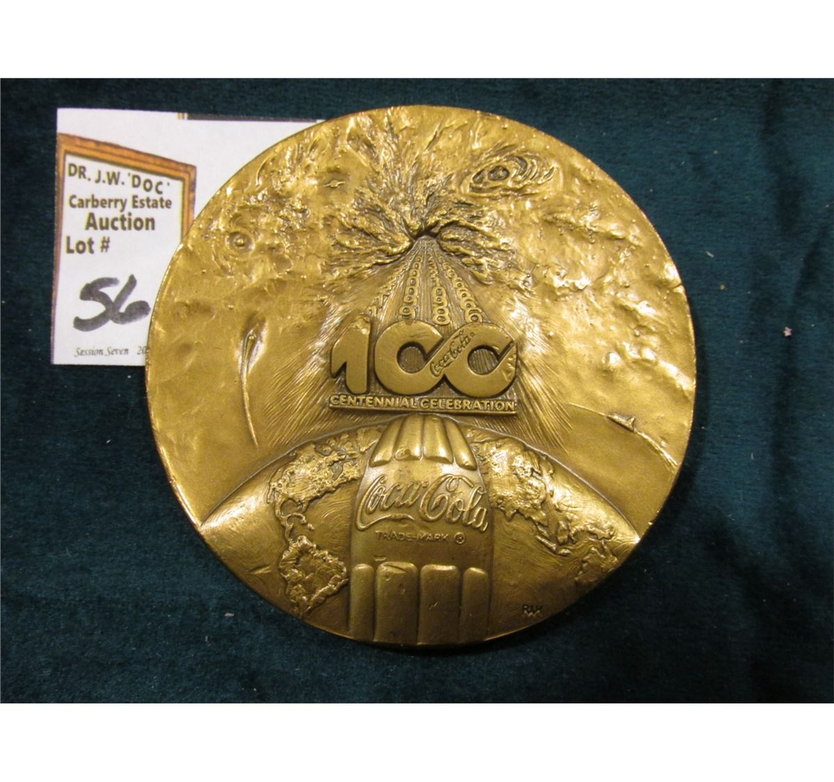 1886-1986 Coca-Cola Distributor Large Bronze Medal, 3" x 1/4", depicts 100 Centennial Celebration bo