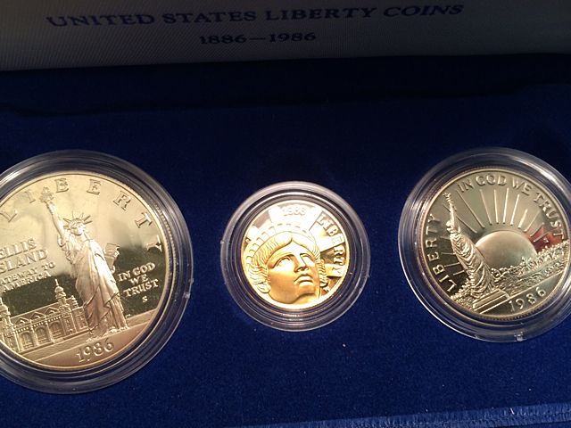 Estate contents of safety deposit box; 1886 - 1986 US Liberty coin set including $5 gold coin in their in the original fitted box. From estate's safety deposit box contents.