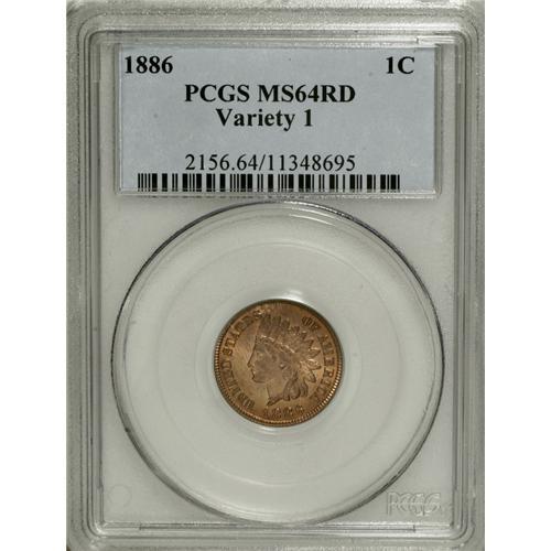 <B>1886 1C Type One MS64 Red PCGS.</B></I> A pumpkin-gold near-Gem of this scarcer issue. A well struck piece with a beautifully smooth reverse and a few flyspecks near the T in UNITED. Population: 27 in 64 Red, 27 finer (2/07).<BR><BR><b>Shipping:</b> Coins & Currency (<a target="_blank" href="http://www.heritageauctions.com/common/shipping.php">view shipping information</a>)