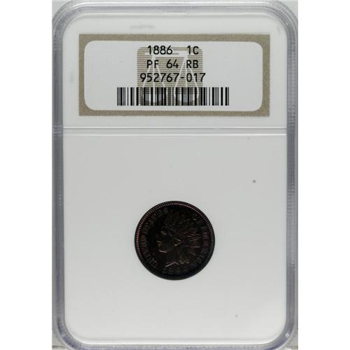 <B>1886 1C Type One PR64 Red and Brown NGC.</B></I> NGC Census: (92/166). PCGS Population (104/87). Mintage: 4,290. Numismedia Wsl. Price for NGC/PCGS coin in PR64: $244. (#2346)<BR><BR><b>Shipping:</b> Coins & Currency (<a target="_blank" href="http://www.heritageauctions.com/common/shipping.php">view shipping information</a>)