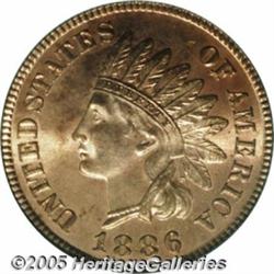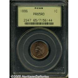 <B>1886 1C Type One PR65 Red PCGS.</B></I> A lustrous and unabraded Gem with pink and peach color on the obverse, while the reverse features lemon and rose hues. An exquisitely struck specimen that has a few tiny mint-made lintmarks on the reverse field. The lowest headdress feather points between IC in AMERICA on the Type One, while the scarce Type Two has the feather between the letters CA. Population: 17 in 65, 11 finer (2/05).
