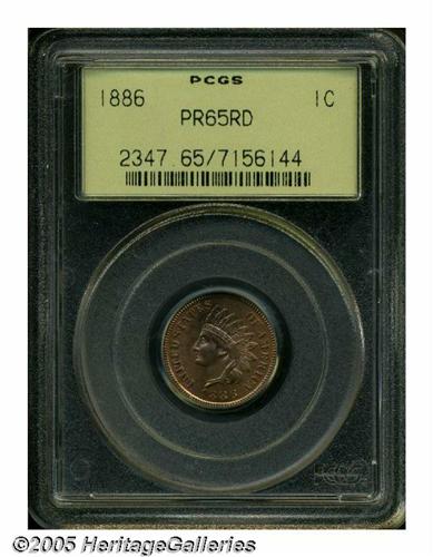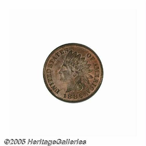 <B>1886<1C> Type One PR65 Red PCGS.</B></I> A lustrous and unabraded Gem with pink and peach color on the obverse, while the reverse features lemon and rose hues. A few light flecks occur over each side. An exquisitely struck specimen that has a few tiny mint-made lintmarks on the reverse field. The lowest headdress feather points between IC in AMERICA on the Type One, while the Type Two has the feather between the letters CA. Of the 4,290 proof Cents produced in this year, only 1,800 pieces were of the Type One variety. Population: 17 in 65, 11 finer (6/05).