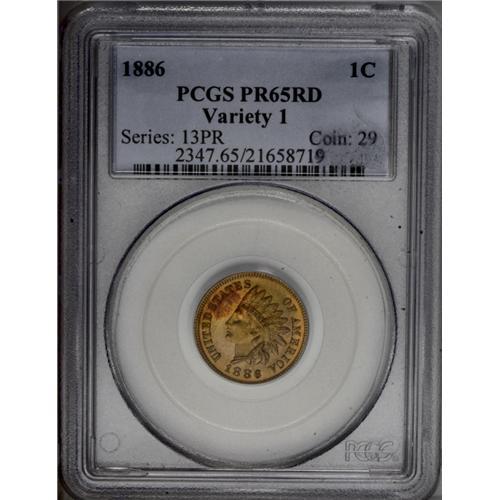1886 1C Type One PR65 Red PCGS. Of the 4,290 proof cen