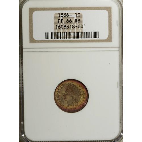 <B>1886 1C Type One PR66 Red and Brown NGC.</B></I> Radiant luster with jade-green centers melding into yellow and magenta at the rims on each side. A few tiny obverse flecks that appear under a loupe fail to diminish the significant appeal.<BR><BR><b>Shipping:</b> Coins & Currency (<a target="_blank" href="http://www.heritageauctions.com/common/shipping.php">view shipping information</a>)