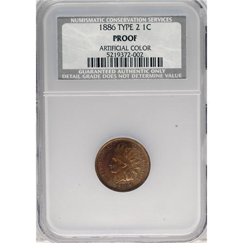 <B>1886 1C Type Two Brown--Altered Surfaces--NCS. Proof.</B></I> NGC Census: (0/0). PCGS Population (0/31). (#92345)<BR><BR><b>Shipping:</b> Coins & Currency (<a target="_blank" href="http://www.heritageauctions.com/common/shipping.php">view shipping information</a>)